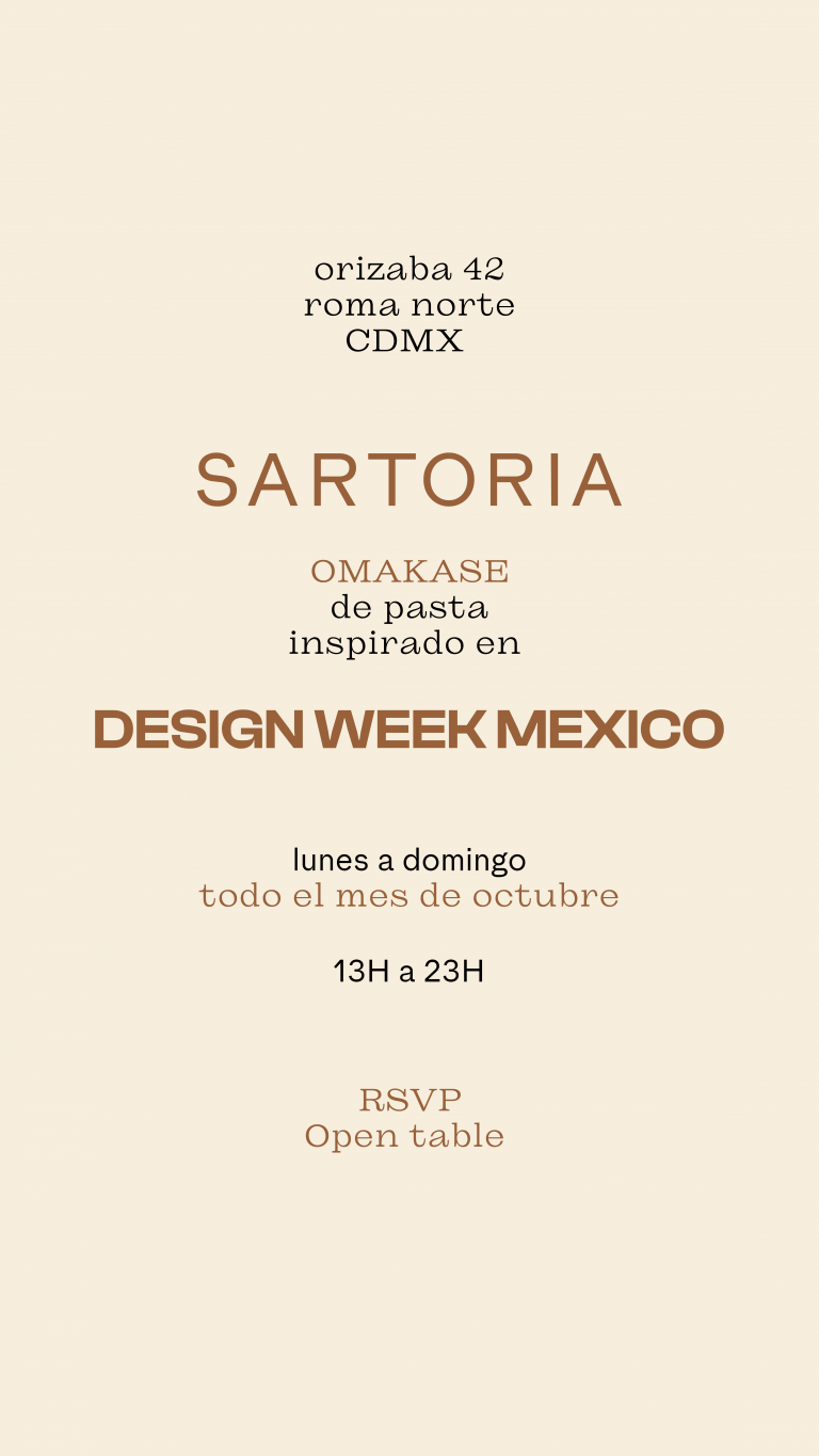 Disfruta de un Omakase de pasta creado por el chef Marco Carboni inspirado en Design Week. Disponible todos los días de la semana de 13h a 23h con reservación previa vía OpenTable. Registra tu asistencia y también en OpenTable.