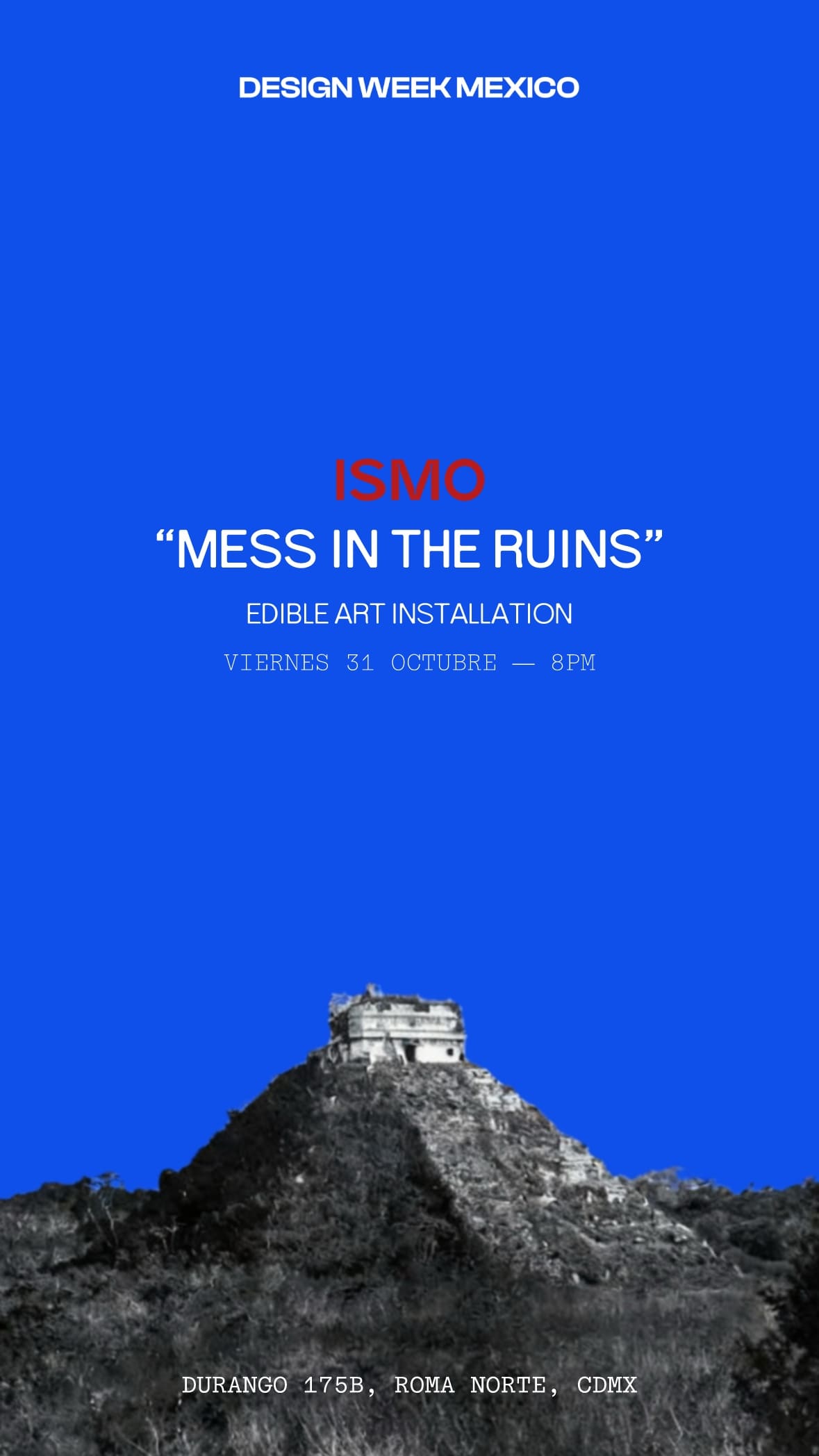 "MESS IN THE RUINS" ES UN VIAJE AL ORIGEN DONDE LAS CULTURAS ANTIGUAS SE REINVENTAN DESDE UNA MIRADA RETROFUTURISTA. EN ISMO LO SAGRADO RESURGE DE MANERAS INESPERADAS, INVITANDO A PROBAR, ESCUCHAR, TOCAR Y DESCUBRIR. + SELECCIÓN MUSICAL ESPECIAL - TODO OCTUBRE Registra tu asistencia.