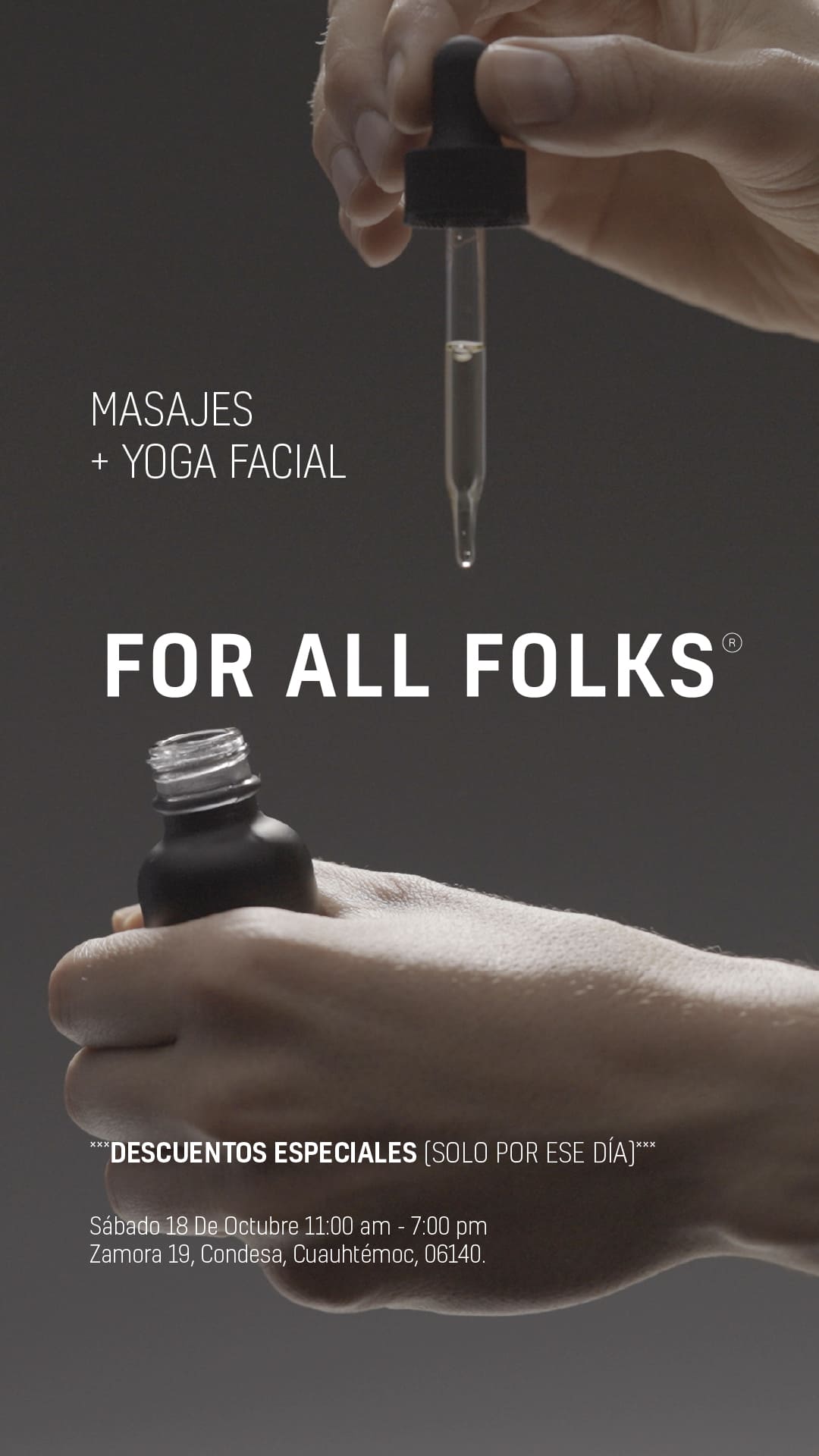 For All Folks, marca mexicana de cuidado personal, te invita a vivir una experiencia de bienestar única este sábado 18 de octubre en nuestra tienda de la Condesa, Zamora 19.